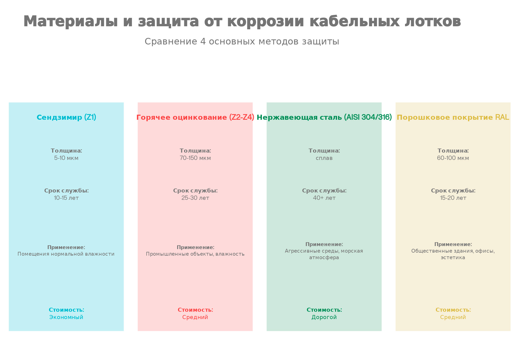 Выбор правильного типа кабельного лотка и соответствующей защиты от коррозии — это инвестиция в надёжность, безопасность и долговечность электротехнической инфраструктуры.