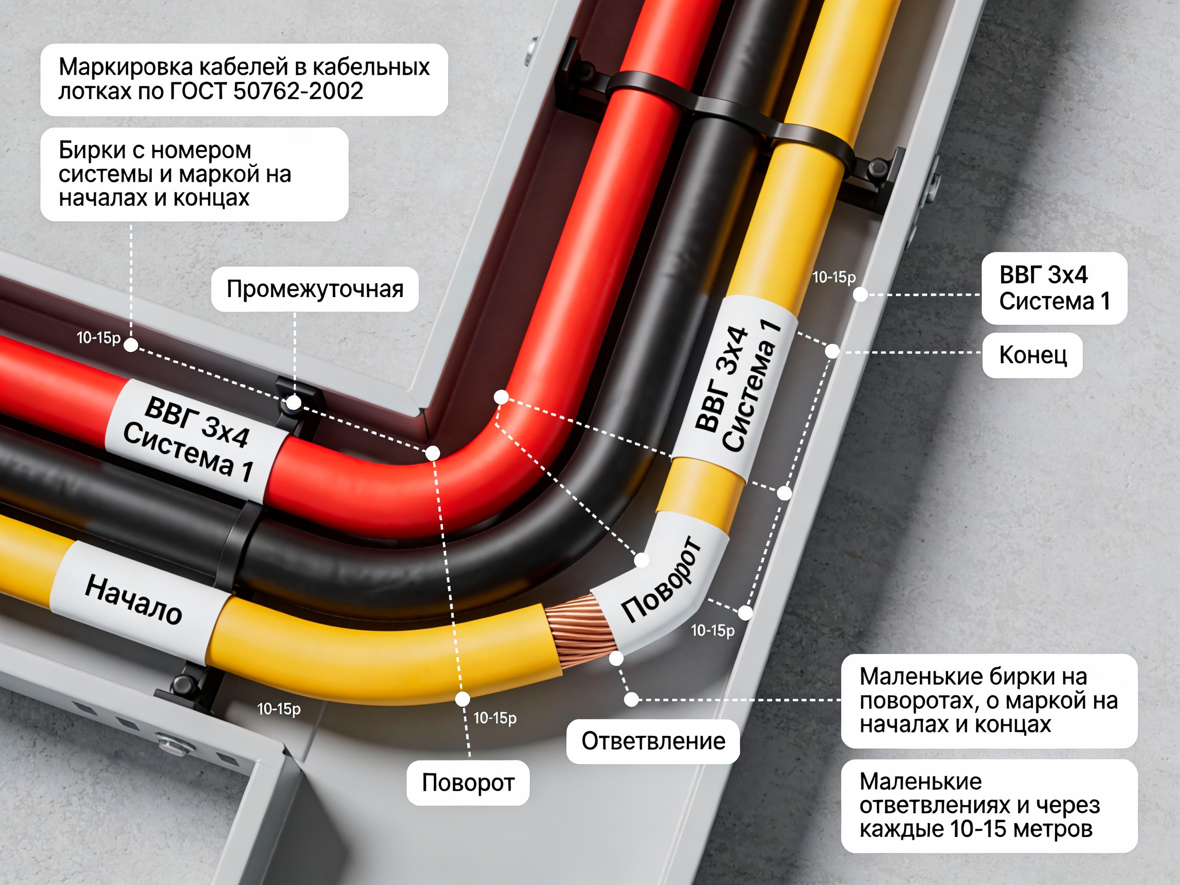 - Используйте маркировку для всех кабелей согласно требованиям