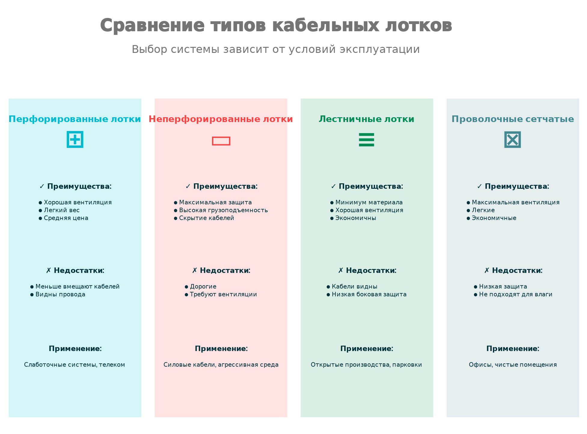 - ✓ Выберите правильный тип кабельного лотка для вашего применения